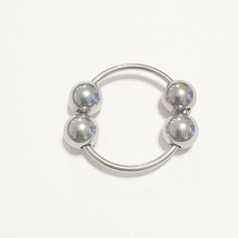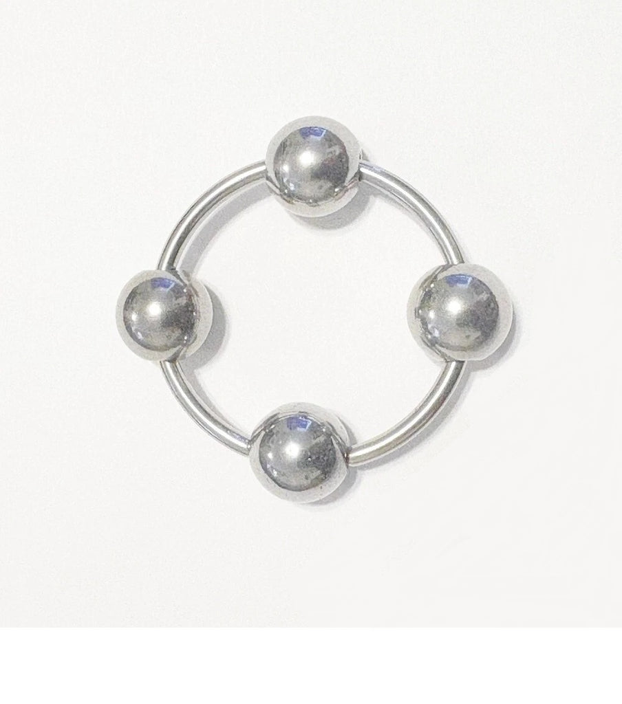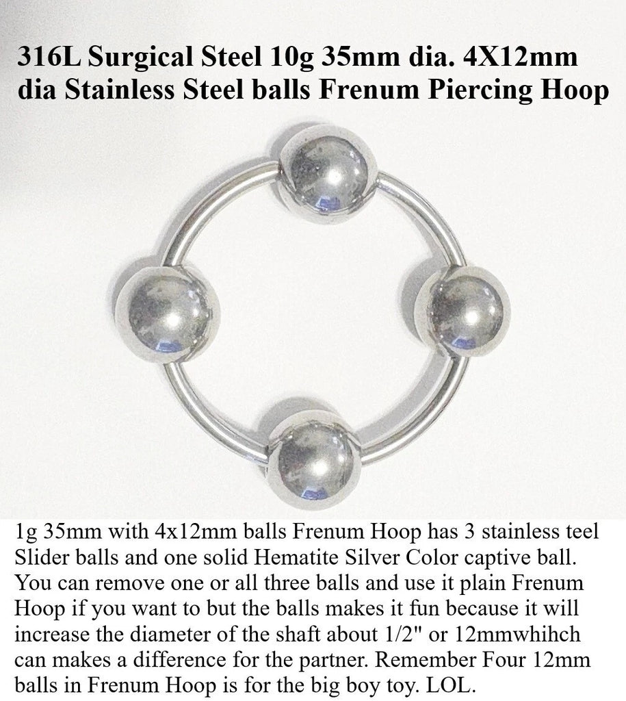 This frenum ring is like the one you see which goes over the glans, This Beaded Frenum Ring is handcrafted and it goes through 10g any length piercing. The ring comes with illustrated instructions how to use it. The beads are stainless steel 304. It has 4 totals ball and these are big ones.