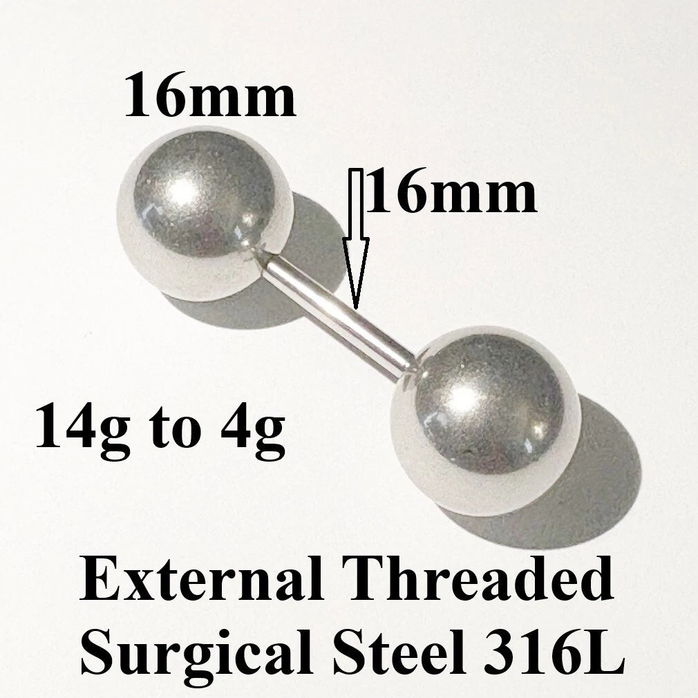 Surgical Steel 14g To 4g with BIG 16mm Balls 5/8" Length Balls Frenum Massager Barbell.