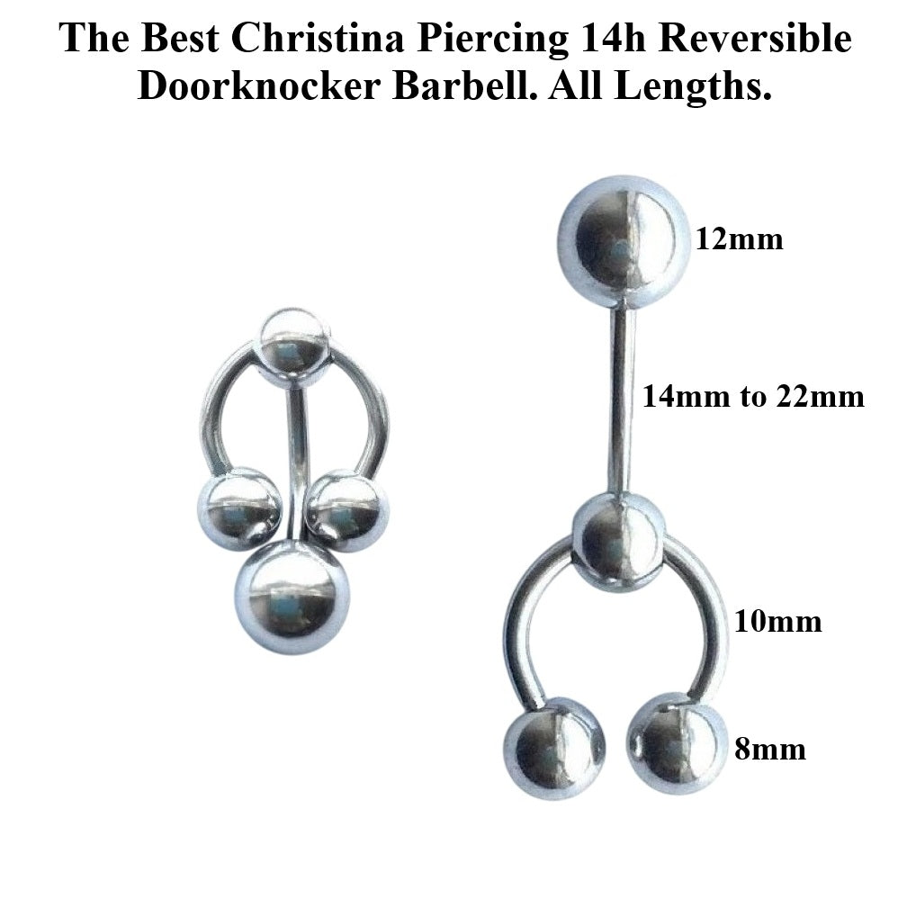 Surgical Steel CHRISTINA 14g Barbell with 1/2" Heaviest Ball Reversible Doorknocker.